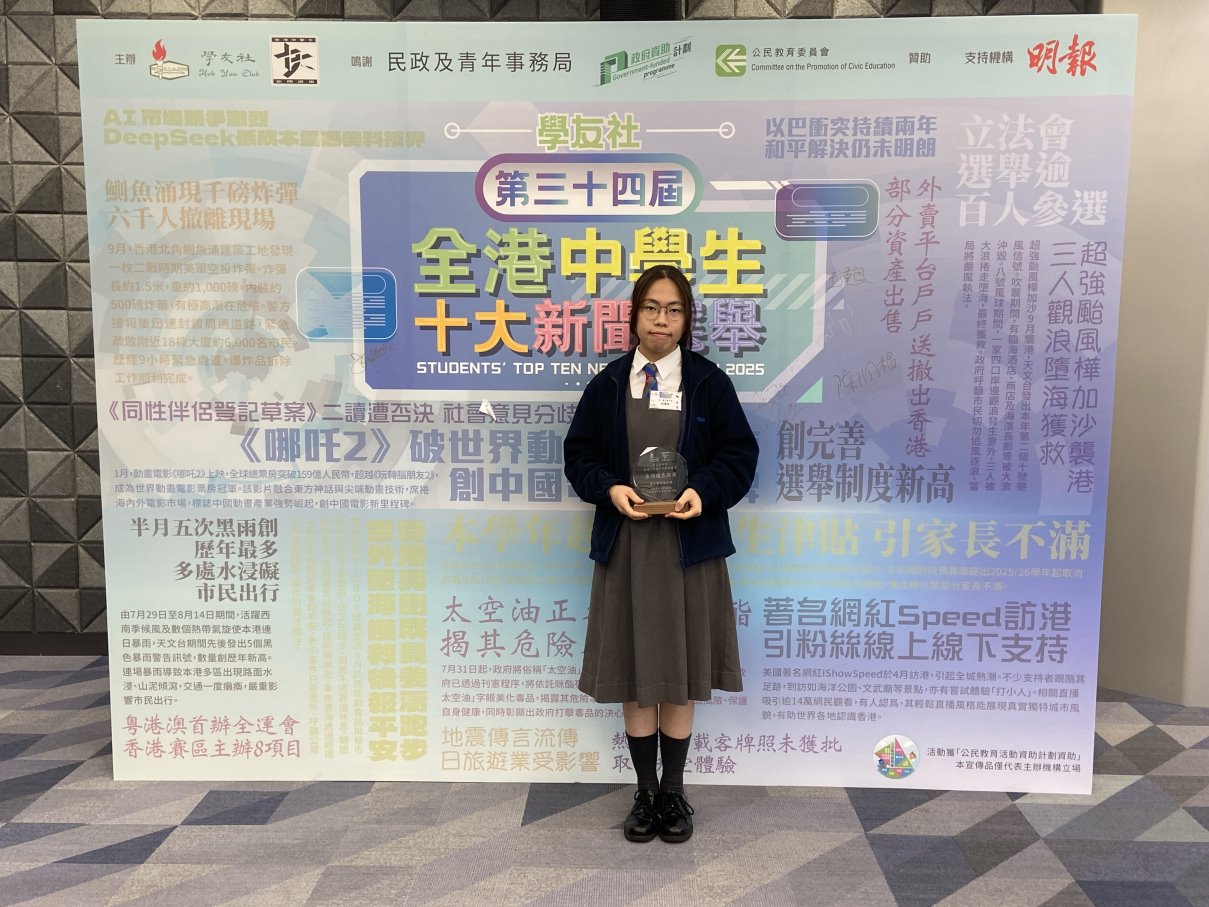 於2026年2月28日以助理總領袖生身份代表學校參與頒獎禮領取獎項。