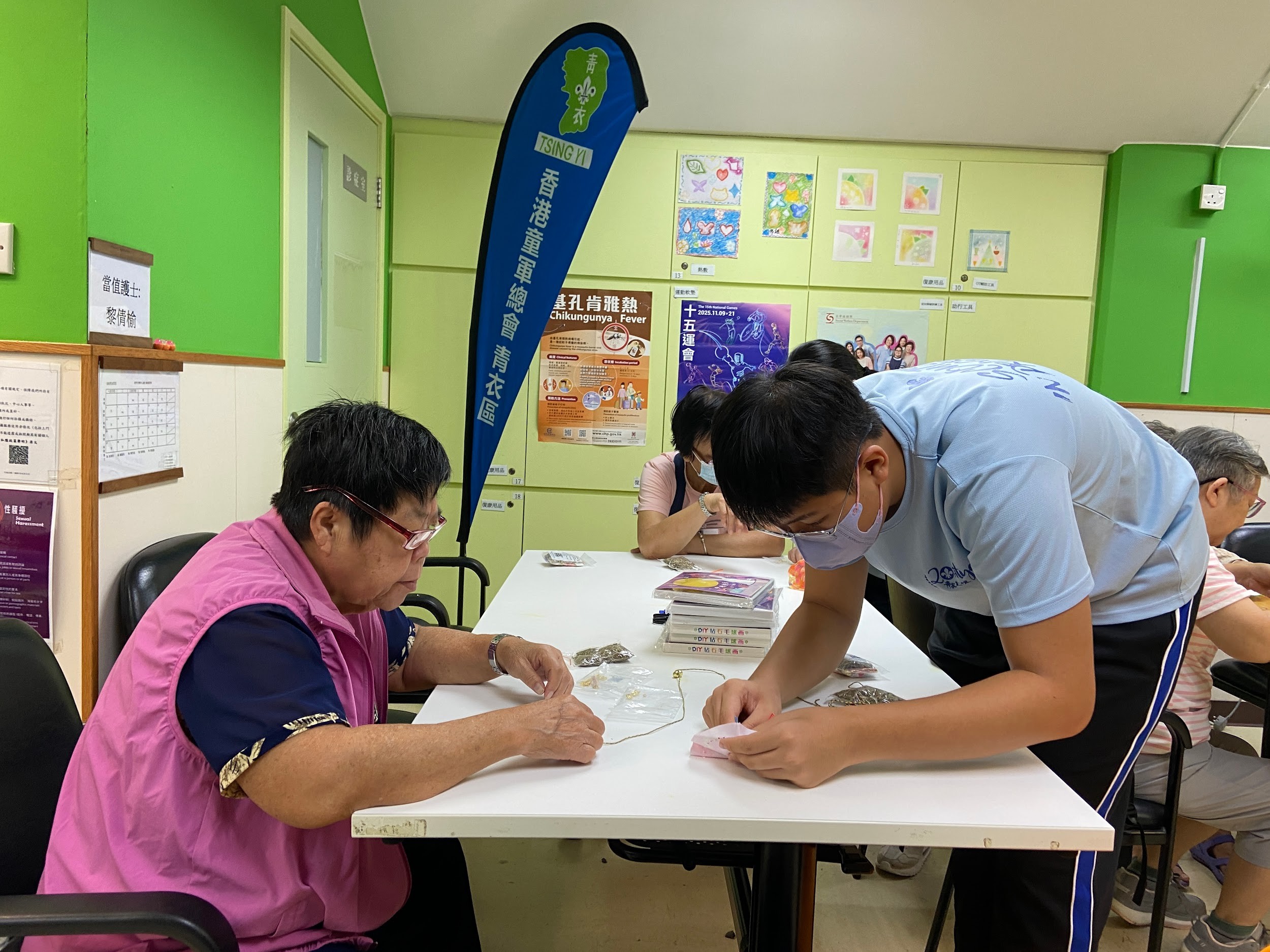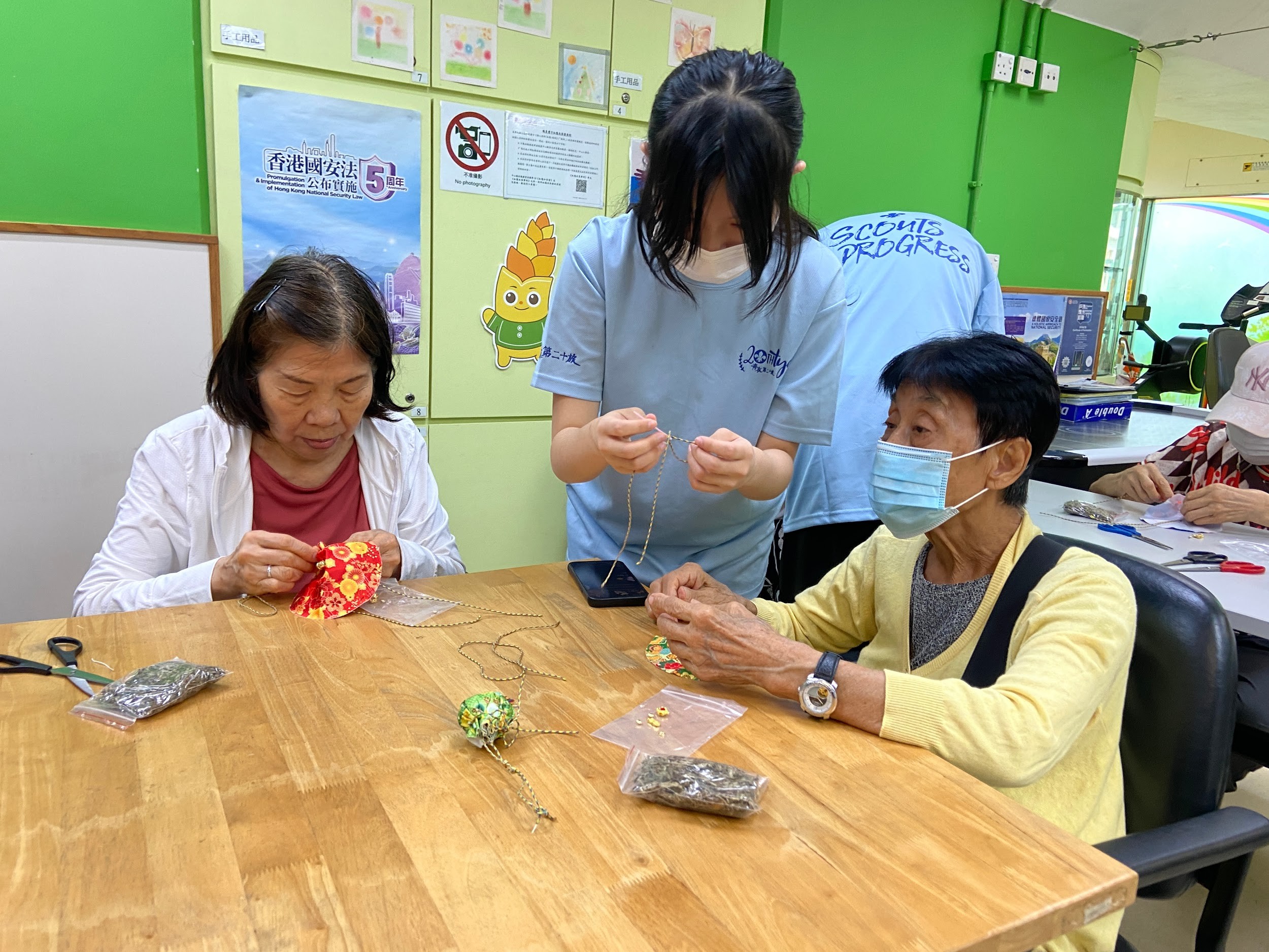 三號颱風天下,成員仍然懷著熱熾的心情參與服務,與長者一同製作中秋香包及毛球畫,同慶中秋。服務對象的笑容正是服務的動力。