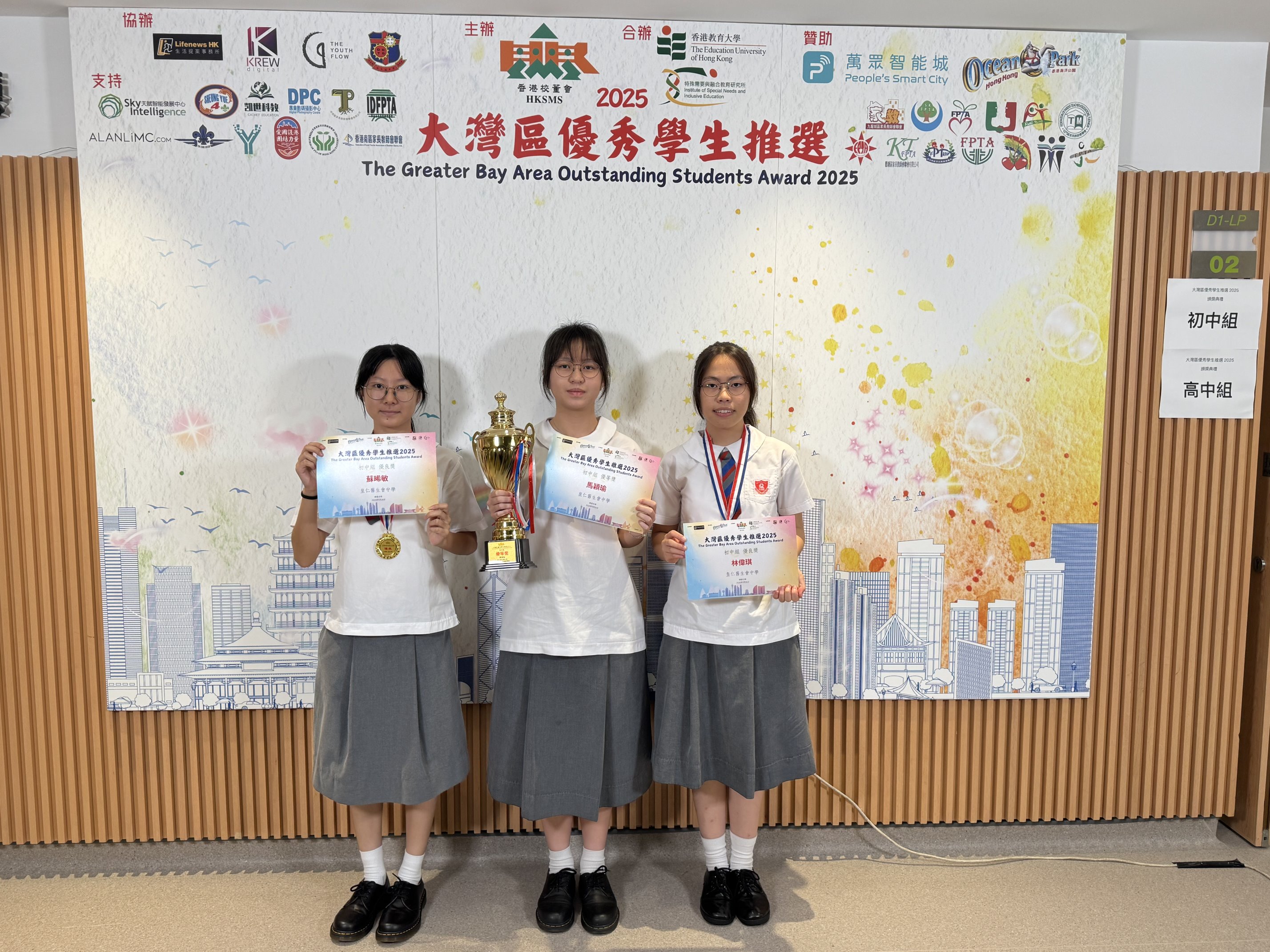 香港校董會舉辦「大灣區優秀學生推選2025」,為表揚大灣區學業成績表現優異,同時在課外活動、社會服務等方面也有出色表現的年輕學子。本校三名中三級學生榮獲優秀學生殊榮,名單如下: