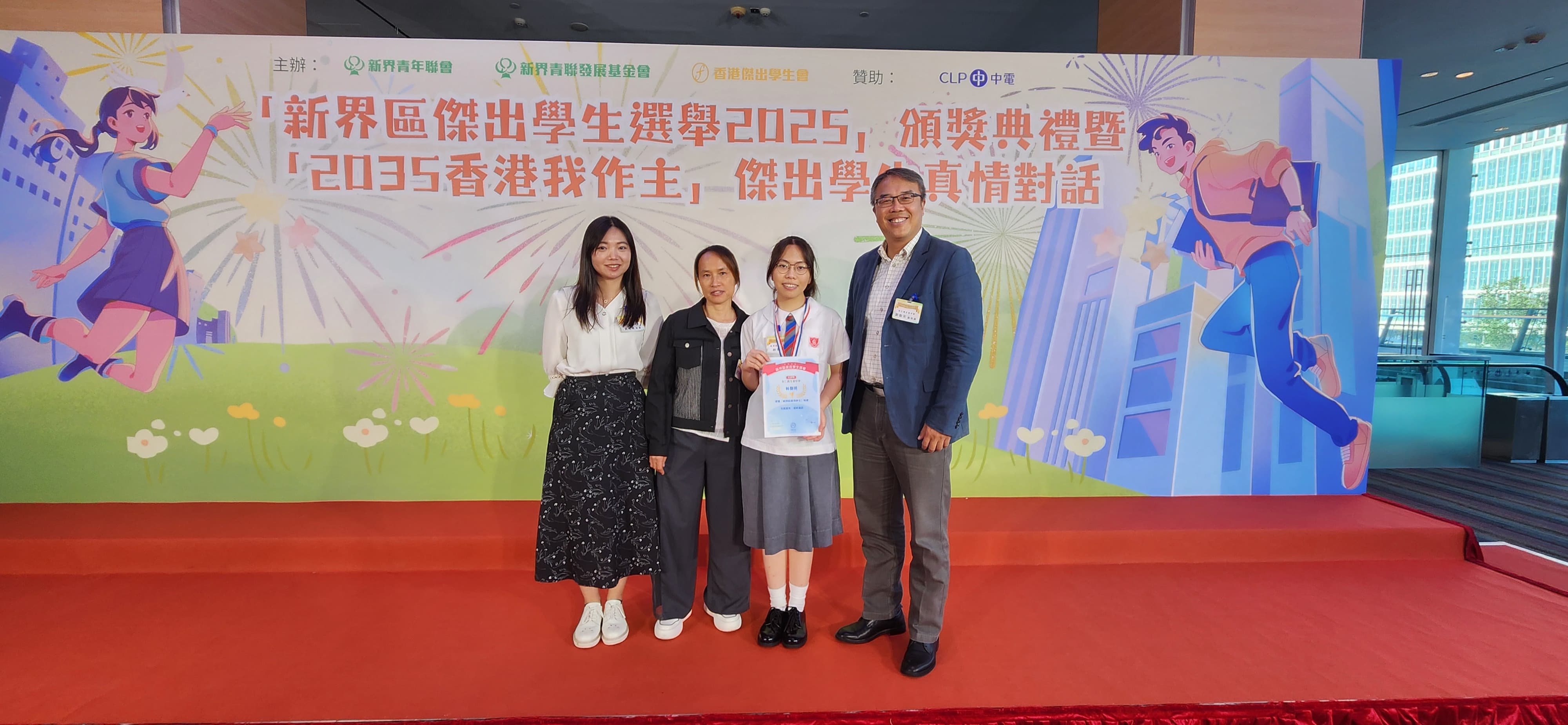 本校4A林偉琪同學去年參選「荃葵青優秀學生選舉2025」勇奪初中組優勝獎。其後更代表荃葵青區出選「新界區傑出學生選舉2025」,經過重重考驗,過五關斬六將,林偉琪同學 最終獲選 初中組「新界區優秀學生」