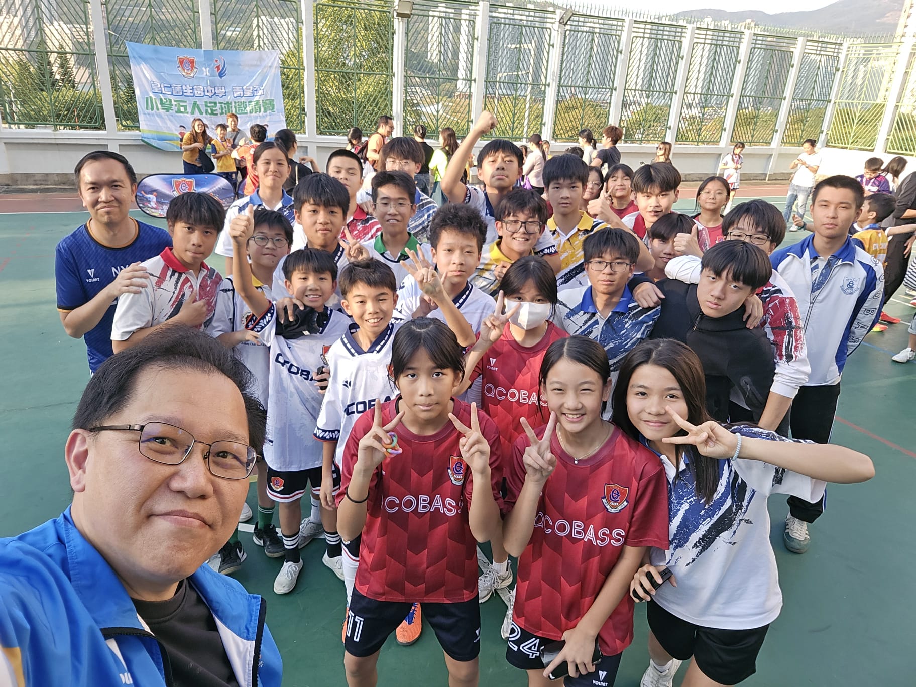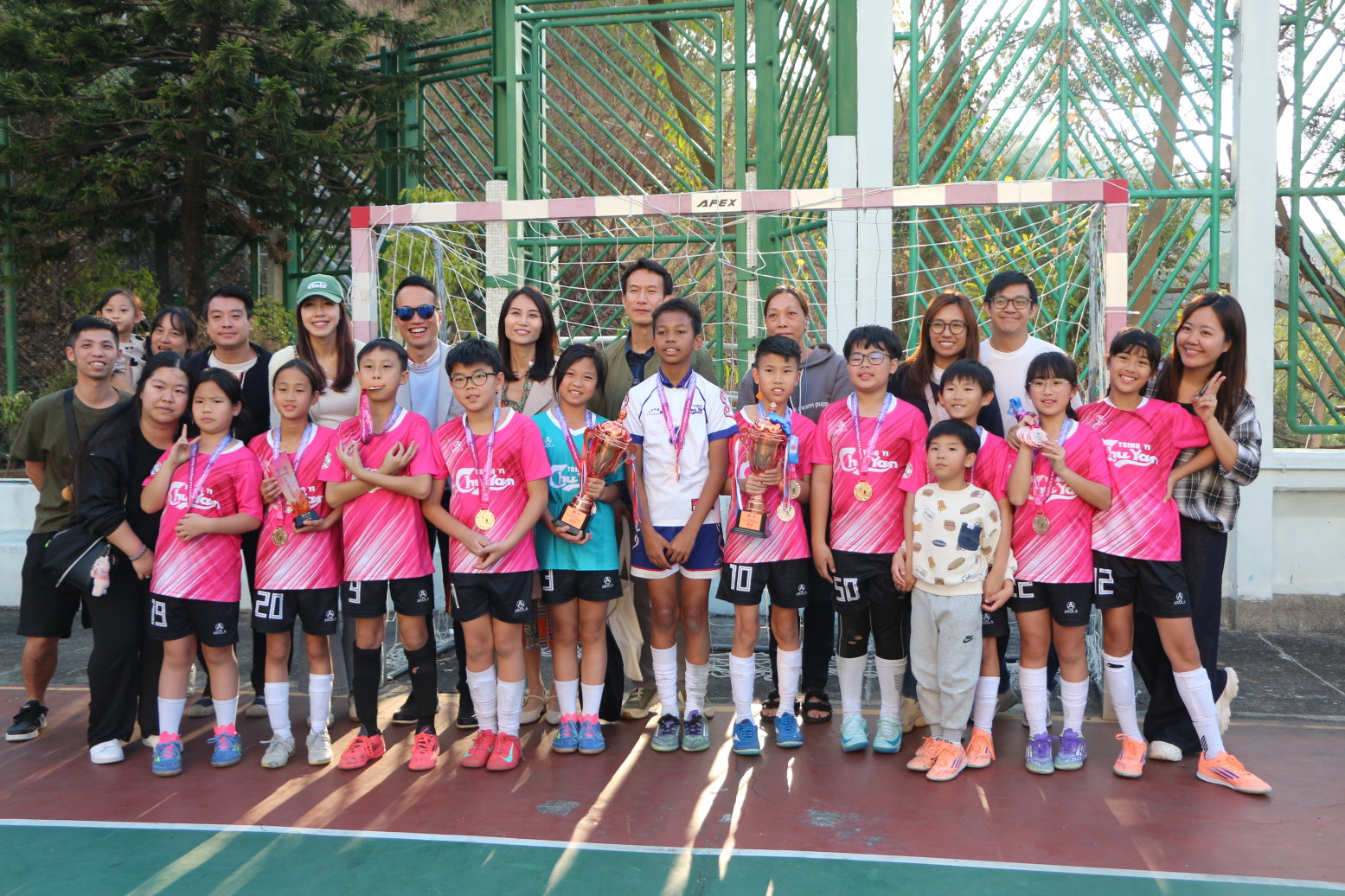 聖公會青衣主恩小學的男、女子隊員及領隊老師於得獎後合照