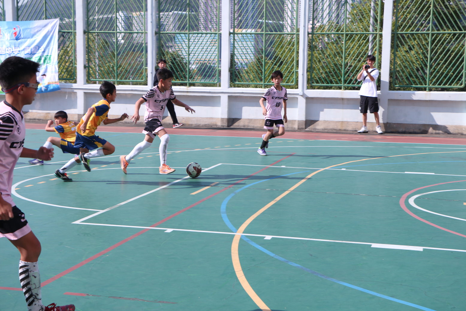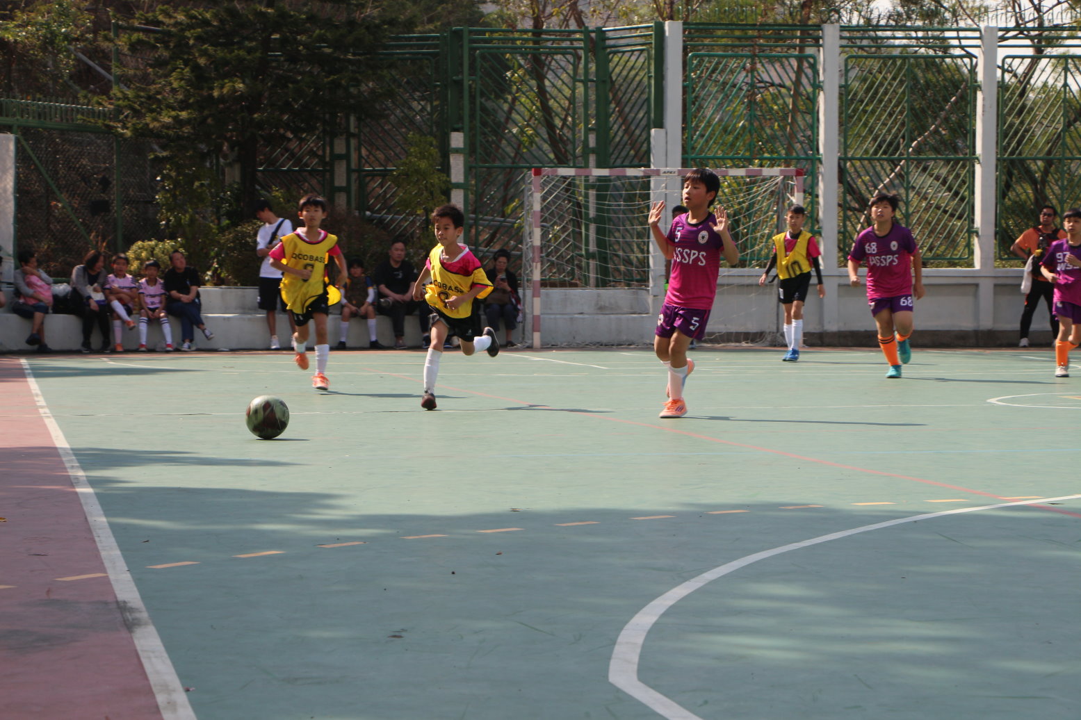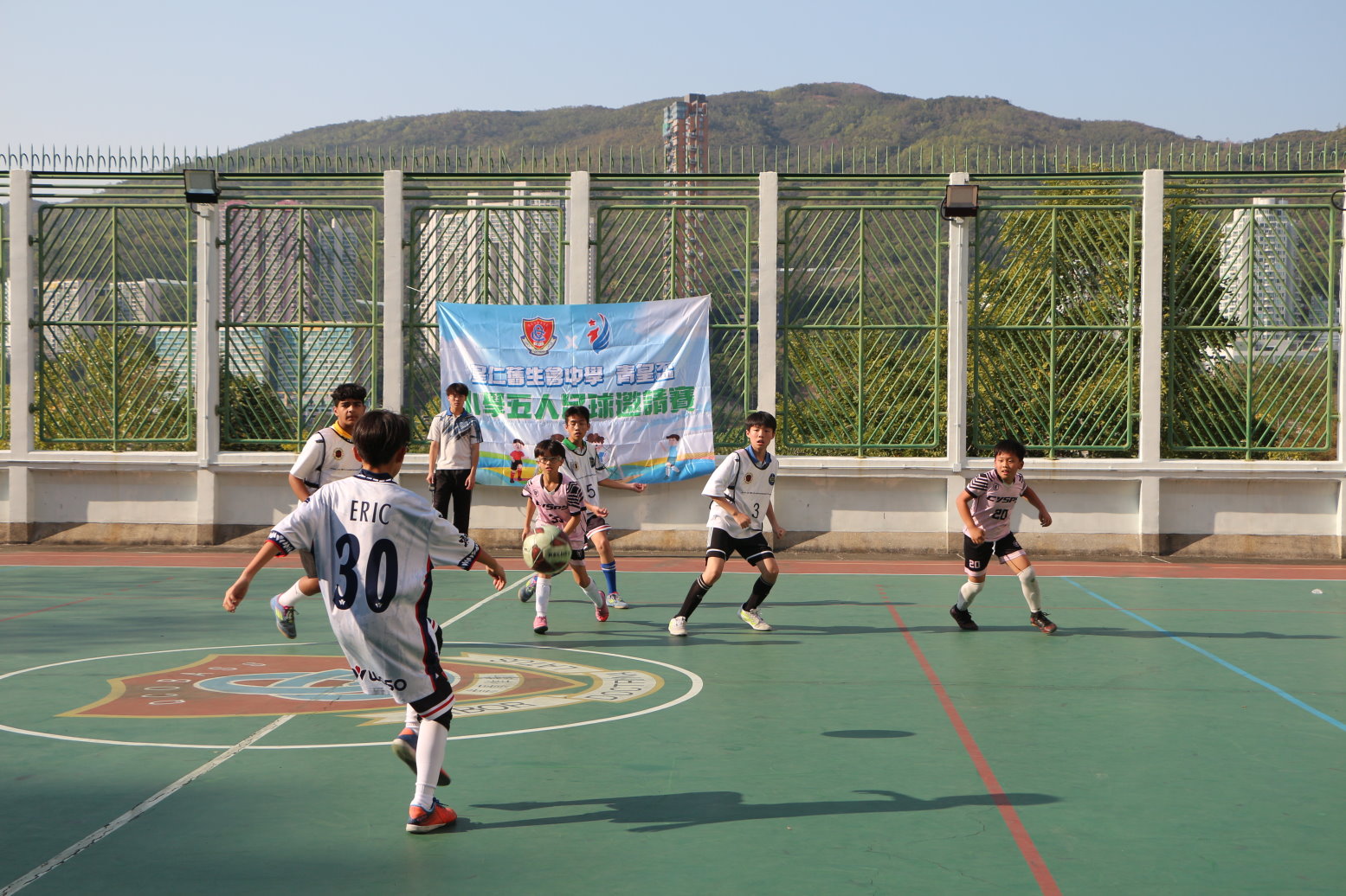 聖公會青衣主恩小學與東華三院黃士心小學的男子隊展開一場激烈的