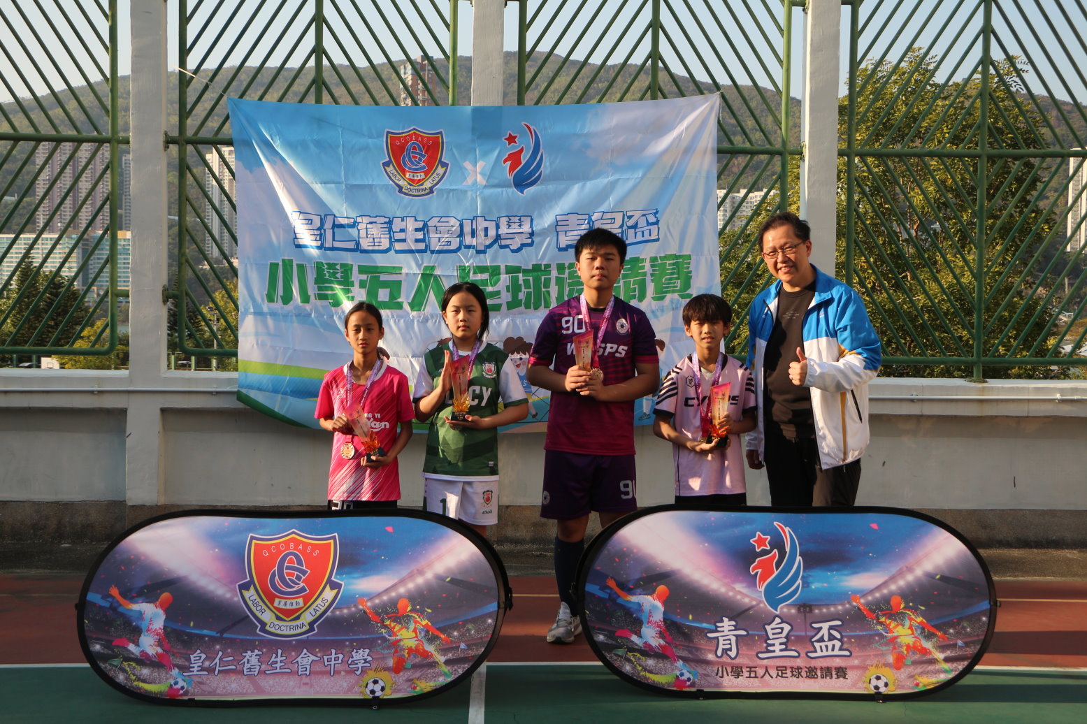經過激烈而精彩的對決後,最後由東華三院周演森小學的男、女子隊奪得冠軍!他們分別與本校的U14男子校隊及女子隊進行友誼賽,賽後邀請到本校校長許建業先生作為頒獎嘉賓,最後整個賽事在健兒揮灑汗水及觀眾熱烈打氣下圓滿結束!