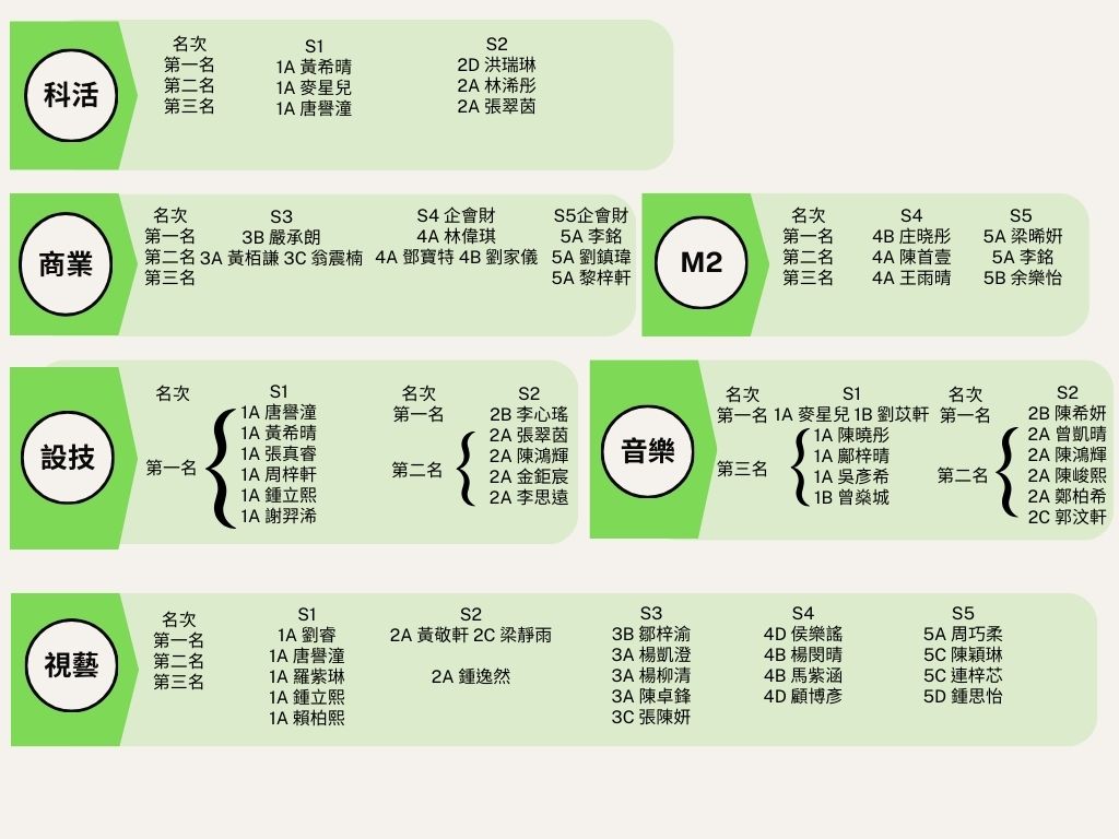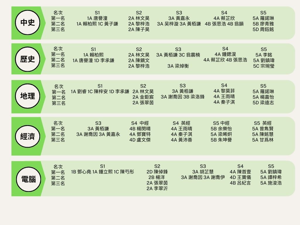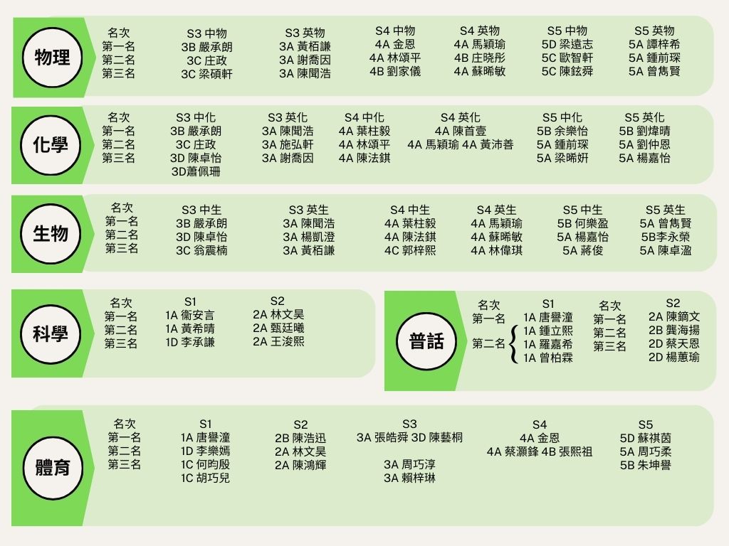 揚當中表現優良的同學,詳情可參閱下表。